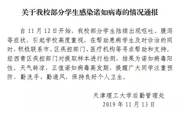 天津理工大学有学生陆续呕吐腹泻 校方:感染诺如病毒