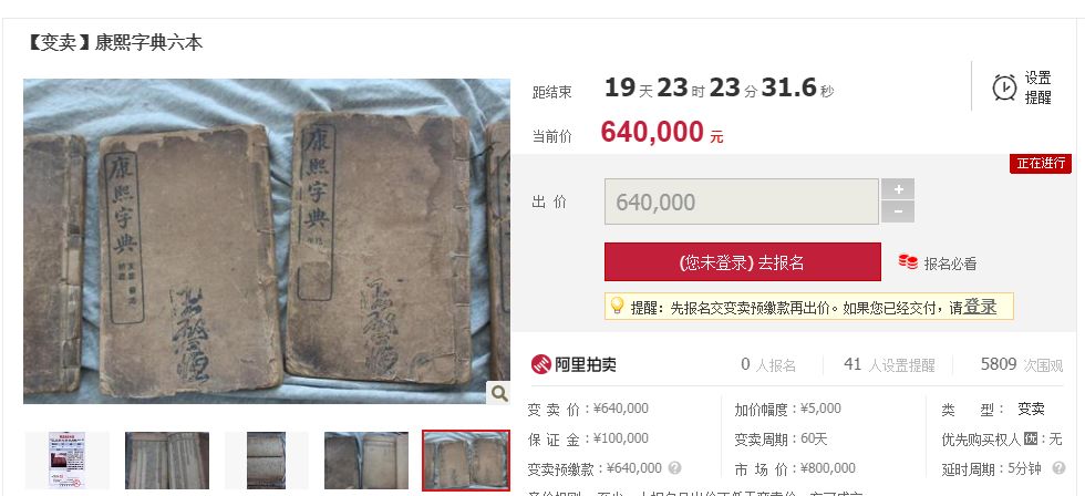 法院要拍卖六本康熙字典市场价为 800000 元!你家有么?