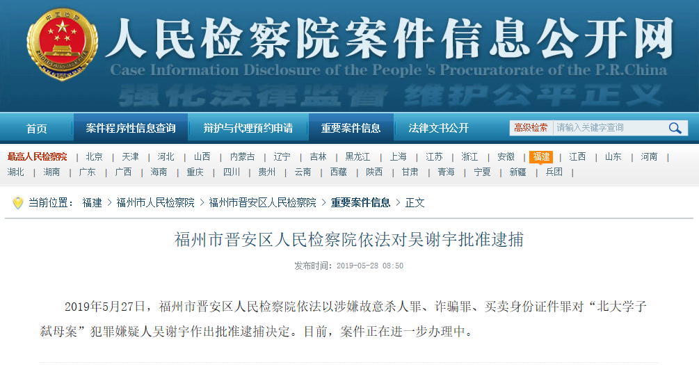福州市晋安区人民检察院依法对吴谢宇批准逮捕