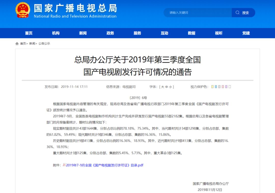 广电总局公布第三季度电视剧发行许可:近代题材多,古代题材零通过