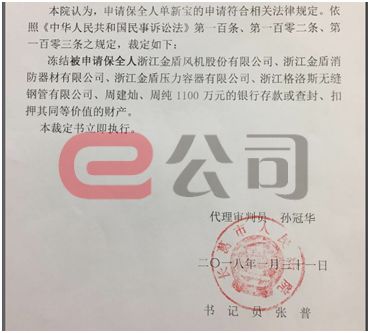 周建灿2018年1月30日坠楼后,河南合众中小企业信用担保有限公司在1月31日、2月1日就分多次向芜湖华天汇付了款项,履行了代偿责任,并于2月1日向长葛法院起诉,长葛法院当日受理,当日作出财产保全裁定,次日即在浙江上虞查封了金盾股份的多个银行账户。