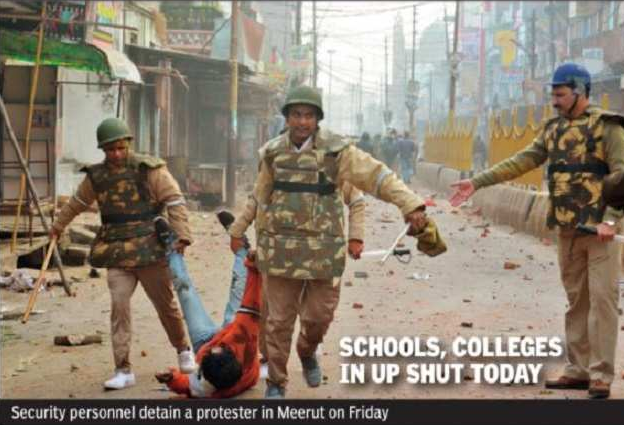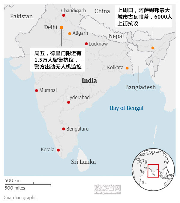 一纸备受争议的“公民身份修正法案”,引发印度大规模示威,近10天来多地爆发骚乱,且严峻局势已从东北部地区蔓延至新德里及孟买,首都多地遭政府断网。 截至12月20日,骚乱导致17人死亡。印度警方已出动无人机对德里进行监控,还搬出源于英国殖民时代的法律,在新德里及东北部多地禁止4人以上规模的集会。 中国驻印度使馆20日发布安全提示,提醒在印中国公民注意安全。 12月20日,印度德里贾夫拉巴德(Jafrabad),警方与示威者对峙 图源:路透社 综合印度斯坦时报、美联社、今日印度等媒体报道,当地时间20日,因反对“公民身份修正法案”引发的暴力示威继续蔓延,当天北方邦有9人死亡,加上周四的3人及此前阿萨姆邦的5人,印度全国已有17人在这场风波中遇难。 北方邦是暴力示威的重灾区,抗议者纵火焚烧警察哨所及车辆,向安全部队丢掷石块。北方邦警察局局长辛格(O.P. Singh)透露,当地已有至少50名警察受伤。 此外,警方还在北方邦拘捕超过3300人,另有200人被预防性拘押。 针对舆论指责警方打死示威者,辛格予以否认,他坚称没有一个人死于警方对抗议者采取的行动;尽管包括警察在内的几名死伤者都受了枪伤,但警方一颗子弹也没发射。 在首都新德里,数千民示威者在印度最大清真寺——贾玛清真寺(Jama Masijd)外聚集,他们挥舞着印度国旗,高喊反对政府和修正法案的口号。 警方已禁止清真寺到议会附近地区的游行,并出动高压水炮驱散示威者。 知名地标德里门附近也发生了暴力示威活动,高峰期有约1.5万人聚集,达里甘基(Daryaganj)有汽车被烧毁。德里地铁一度关闭了16个地铁站的出入口,当地警方还使用无人机对全城的抗议活动进行监视。 20日晚,德里门附近,一辆汽车被烧毁 图源:印度报业托拉斯 美联社称,一项源于英国殖民时期的禁令已经在首都部分地区及北方邦、阿萨姆邦实施,该法律禁止四人以上的集会。 北方邦警方指出,发生在印度各地的暴力模式是一样的:规模超过预期的游行队伍以和平方式开始,但随后演变成暴力,抗议者向警察投掷石块,毁坏公共财产,迫使警方作出反应。 前警察局长贾恩(AK Jain)也认为,暴力事件似乎是精心策划的。 另一方面,美联社在一段监控视频中看到,印度警方周四晚间曾进入南部城市芒伽罗(Mangalore)的一家医院,用警棍驱赶躲在里面抗议者。 报道称,视频显示有抗议者向警方投掷石块并躲进医院,警察则试图用脚踢开病房的门。一名医院员工称,警方在医院里发射了催泪弹。 印度警方20日在北方邦密拉特(meerut)拖走示威者 印度时报截图 印度政府此前推出“公民身份修正法案”,提议印度授予2014年12月31日前因“宗教迫害”来到印度的巴基斯坦、孟加拉国和阿富汗非法移民国民身份。但规定只有印度教、锡克教、佛教、耆那教、拜火教和天主教徒才有资格获得合法身份,将穆斯林排除在外。 尽管该法案备受争议,但仍获得印度国会通过,并于12月12日由印度总统科温德签署生效。 法案一出,拥有众多被排除国民身份穆斯林群体的阿萨姆邦率先爆发骚乱,导致日本首相安倍晋三原定的访印计划不得不暂时取消。 而随着暴力冲突逐渐蔓延至新德里等地,印度政府为避免谣言传播导致事态升级,相继在阿萨姆邦、北方邦及新德里等地中断互联网服务。 暴力冲突至今没有减缓迹象,而印度总理莫迪暂时也没有要让步的意思。他再三强调,修正法案不会影响任何公民的权利,还指责反对党国大党“宣传暴力及制造恐惧氛围”。 路透社21日援引印度政府消息人士的话说,莫迪会于当天召集各部长开会讨论安全问题,就“公民身份修正法案”导致的局势进行评估。 12月20日,中国驻印度使馆发布安全提示,提醒在印中国公民注意安全。 公告称,近日印度多地发生游行示威,一些地区发生暴力冲突和人员伤亡。中国驻印度使馆提醒在印中国公民提高自我保护意识,加强安全防范,注意出行安全,设法避开游行或示威的区域。如有需要领保协助,请及时联系就近的中国驻印度使领馆。 来源:观察者网 |