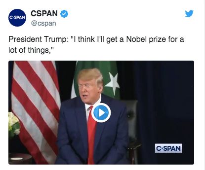 美联社报道,上个月,特朗普还抱怨,他做了很多事情都值得拿诺贝尔奖,认为诺贝尔委员会不公平。