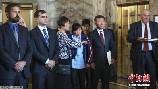 当地时间2019年7月18日,经陪审团决定,章莹颖案被告克里斯滕森被判处终身监禁。图为章莹颖家属及律师出席新闻发布会。