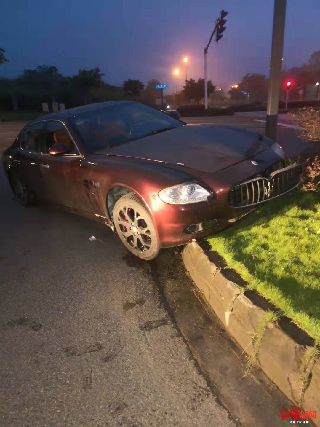 玛莎拉蒂撞上花台 内部零件竟被铁丝捆绑