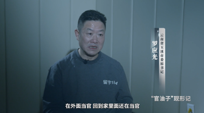 ![]() 2月21日晚播出的《“官油子”现形记》下集,为您深入剖析:“官油子”现象背后的危害是什么?“官油子”缘何久禁不绝?根源何在?“官油子”们的教训和忏悔有哪些?“官油子”破解之道在哪? ![]() 该专题片指出,冰冻三尺非一日之寒,清除“官油子”非一日之功,关键要从党员干部身边的小事小节抓起,以小见大,以小见严,让“官油子”无“油”可抹,无机可钻,无所遁形。 ![]() 为享“官瘾”在家开会,3个月大的婴儿也要参会 罗应光在《“官油子”现形记》中称,自己到玉溪任职后,和各类老板接触就比较多了,看到他们住的房子都好,而自己作为一个市委书记稍微享受点也是“正常的”,为了满足自己喜欢泡澡的习惯,罗应光不仅给自己安了浴缸,还安装了一个活动的桑拿室。 爱喊口号、爱开会传达、爱搞“走秀式”调研的罗应光,喜欢给个人形象“上油”。因其习气性的“油”、套路上的“油”,被干部群众戏称为“罗会长”“罗传达”“罗调研”。 而为了过足“官瘾”,罗应光还时常在家里召开家庭会议。《“官油子”现形记》中提到罗应光的一段话。