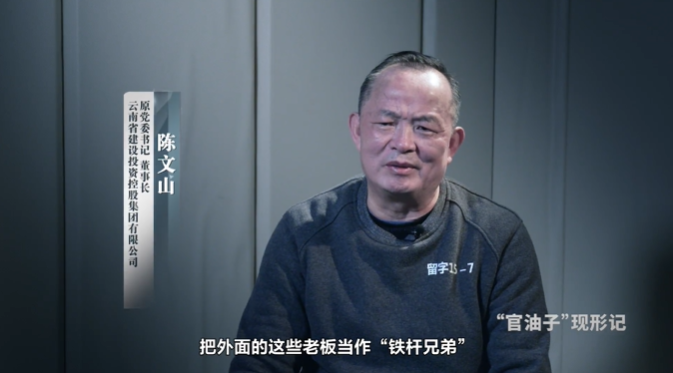 ![]() 《“官油子”现形记》首次披露云南省属国有企业专职外部董事段文泉相关案情。为了升迁,他攀附白恩培,还钻进秦光荣的“圈子”。 段文泉出生于1972年3月,河北涿州人,博士研究生学历。他长期在云南工作,曾任云南省开发投资有限公司投资部副总经理,云南省能源投资集团有限公司党委书记、董事长,云南省属国有企业专职外部董事等职。 段文泉被称为是“芳香型”官油子。专题片指出,“在下属的眼中,他所有的衬衣跟裤子都熨得笔直,皮鞋干净、发型持重。头可断,发型不可乱,举手投足都是清新儒雅的形象。” 注重生活品味的段文泉,不惜挥霍浪费公共财产,在单位办公区域安装使用84部香氛系统,只为保持办公环境的芳香怡人。 2021年11月,段文泉被查。2022年4月,他被开除党籍和公职。 去年9月,云南通报5起违反中央八项规定精神典型问题,其中提到,2013年12月至2021年4月,段文泉多次收受下属和管理服务对象所送的木质工艺品,高档红酒和白酒共32瓶,高档香烟共16条,虫草2500克,礼金3万元;段文泉及其家人多次接受私营企业主提供的赴境外和西藏、海南等地旅游安排;多次接受私营企业主宴请,食用高档菜肴、饮用高档酒水;多次借用管理服务对象车辆供其本人及家人使用,产生的油费、通行费、维修保养等费用由管理服务对象支付;挥霍浪费公共财产,审批同意在单位办公区域安装使用84部香氛系统,支出费用84.9万元,造成不良影响。 2008年,36岁的段文泉已是一名处级干部,担任云南省电力投资有限公司董事长。但由于在工作中得罪了领导,屡屡受挫,他想到了“制衡之术”。 “当时对我来说,要在这么一个矛盾过程中自保,只有更大的权力才能制约权力。”段文泉说道。 于是段文泉攀附上了时任云南省委书记白恩培。 白恩培的妻子张慧清仅用一个电话,就把段文泉从困境中解救出来,这让他尝到了与“权力”结交的甜头。 2009年,迷信权力的段文泉又通过“政治掮客”苏洪波钻进了秦光荣的“圈子”。2012年,经秦光荣安排,段文泉上位云南省能源投资集团有限公司“一把手”。 当上了云南省能源投资集团有限公司党委书记、董事长后,段文泉自诩找到了做大企业的“捷径”,一心做大求快,追求用华丽的数字,装裱企业“门面”。在经营上,脱离主业,采用空单贸易、大肆并表的手段,为报表注水,揠苗助长,虚增营收数额,一心想用虚假的利润和营收捞取政治“油水”。 专题片指出,段文泉的所作所为,造成巨额国资难以收回。 面对镜头,段文泉忏悔道:“我是一个极端的利己主义者。善良、正直、奋进中间的我和我内心深处丑恶贪婪的我一直在斗争。我的错误也体现了我的两面性、虚伪性。 给了好处我就给他办,不给好处我慢慢办 ![]() “雁过拔毛,给了好处我就给他办,不给好处我慢慢办。”在《“官油子”现形记》出场的云南省生态环境厅原党组成员、副厅长方雄面对镜头说,“那些老板都是跟着你的喜好来的,看你喜欢喝酒就请你喝酒,喜欢抽烟就给你抽烟。” 一条条好烟、一瓶瓶好酒,一份份“心意”,一次次买单,这些温情、温暖、温馨看似事小,不起眼,实则是细节里的“魔鬼”。 据公开简历,方雄,男,汉族,1964年4月出生,云南昆明人,大学学历,1984年7月参加工作,1995年5月加入中国共产党。他曾任云南省生态环境厅党组成员、副厅长,云南省供销合作社联合社副主任等职务。 2017年,方雄涉嫌严重违纪违法被查。 2022年5月,云南省纪委监委对云南省供销合作社联合社原党组成员、副主任方雄违规收受高档烟酒等问题进行通报。方雄在担任省生态环境厅(原省环境保护厅)环境影响评价处处长、人事处处长、副厅长等职务期间,先后19次在春节、中秋节等节假日期间收受下属及管理服务对象所送的高档白酒共100瓶、高档香烟共62条。方雄还存在其他严重违纪违法问题。2022年2月,方雄被开除党籍、开除公职,违纪所得予以收缴,其涉嫌犯罪问题移送检察机关依法处理。 一些老板成为“官油子”的受害者,在他们眼里,这些“投资”是无奈的、是必须的,也是有用的。 涉案商人叶某某说:“每到一个时间节点,掌握这个项目的一些关键人员,就会出各种幺蛾子来卡你。实际上,我们作为民营企业来讲是很无奈的。你不送又办不成事,送了自己心里有时候又不愿意。” 一些老板也成为“官油子”的加害者和主张者。行贿人给对方身上“抹油”“泼油”,把亲情政商关系变成“油水”关系、利益勾兑关系,不仅扰乱公平竞争的市场秩序,还助长了办事走“后门”,成事靠“关系”的不良社会风气。 “雁过拔毛,给了好处我就给他办,不给好处我慢慢办。”方雄说。 “官油子”缘何久禁不绝?既有干部个体因素,也与管理体制有关。方雄说:“‘潜规则’‘亚文化’,每个单位都存在,是无形中产生的结果。” 内因决定外因,“官油子”久禁不绝的根本,归因还在于个人自身。“人生的第一粒扣子没有扣好。如果早一点知道这些情况,早一点制止,早一点拒绝这些东西,可能后面自己就坦然多了。”方雄说。 “侥幸心理害人啊!”方雄说,“我不是主动跟他要的,是他主动送上门来。我觉得给他办了,他爱给就给了。自己有点不知敬畏吧。” 2022年9月,方雄被“双开”。通报称,方雄丧失理想信念,弃守职责使命,违规收受礼品礼金,违规接受宴请、旅游安排;违反组织原则,