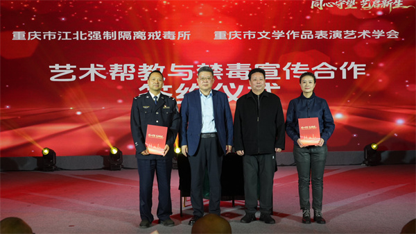 12月4日,在第12个国家宪法日和第40个国际志愿者日来临之际,“同心守望 艺启新生”2025年重庆市文学作品表演艺术学会志愿服务活动走进重庆市江北强制隔离戒毒所暨场所开放日活动正式举行,一场以文化为桥、以艺术暖心的文艺帮教演出在此精彩上演,为戒毒人员带来一场艺术盛宴,也带来社会的关怀与温暖。 演出开始前,部分戒毒人员家属受邀进入江北所实地参观,了解戒毒人员在所内戒治、生活情况,民警向戒毒人员家属详细介绍了该所执法管理、教育矫治、康复治疗、职业培训等工作。据该所所长祝雨川介绍,近年来,江北所积极探索“多主体融合 + 多元路径”戒毒工作新模式,深耕文化教育矫治之路,构建“家文化”特色教育体系,深化陶艺艺术心理疗法,研发“新途通”就业服务平台,培育“守望者”禁毒品牌,形成“家文化 + 陶艺 + 戒治 + 就业”的教育戒治新路径。 演出现场,江北所所长祝雨川代表全体民警,对重庆市文学作品表演艺术学会和来自公安、检察院、街道社区的嘉宾表示热烈欢迎和衷心感谢。他表示,此次帮教文艺演出是重庆市文学作品表演艺术学会传递真善美、传播正能量的善行义举,也是对场所教育矫治工作的精准助力和有力升华。 演出活动中,在市教育矫治局副局长杨屹伟,国家一级演员、重庆市文学作品表演艺术学会创会会长郝鹏寿的见证下,江北所所长祝雨川与重庆市文学作品表演艺术学会副秘书长党元苓签订艺术帮教与禁毒宣传志愿服务合作协议。据了解,2023年,江北所民警发起成立的“守望者”禁毒志愿服务队,已先后进校园、进社区、进乡村开展各类禁毒宣传活动60余次,直接受众超过10万人。此次合作是双方将文化艺术与禁毒宣传和戒毒帮教工作融合的新起点,也将为开展禁毒宣传提供更多新思路和新路径。 文艺演出在大型舞蹈《奔腾》中拉开帷幕,舞者们身姿矫健,如骏马奔腾,展现出生命的力量和迈向新生的气势。情景朗诵《父与子的对话》《夫妻的对话》《父与女儿的对话》等节目创作来源于戒毒人员与亲人的家书家信,艺术家通过亲情的呼唤,为戒毒人员带来温暖的指引。重庆大学艺术学院教授陈燕深情演绎的《雁南飞》,让大家感受到亲情的眷恋与等待。江北所民警唐勤天带来的男声独唱《你的答案》,传递了自我救赎、勇敢向前的励志精神。 萨克斯合奏《清晨我们踏上小道》《绒花》,女声独唱《望月》《幸福中国一起走》,京剧《梨花颂》《红灯记》选段,男声独唱《黄杨扁担》《等待》等节目精彩纷呈,用艺术的力量传递着社会的关爱与支持。演出最后,大型舞蹈《祖国颂》将活动推向高潮。 此次活动不仅为戒毒人员带来了一场艺术盛宴,更让他们感受到社会的关爱和温暖。“艺术连接心灵,文字传递力量。许多文学文艺作品都在以各种艺术方式讲述着困境中的坚守、迷途后的觉醒,它们诉说关于勇气与重生的故事,能带给戒毒者以精神鼓舞。我们希望通过学会志愿者的演出,将那些蕴含在优秀文学文艺作品中的坚韧、希望与美好,化作一份温暖,送到需要关爱的人身边。”郝鹏寿表示,“戒毒之路道阻且长,禁毒宣传更需要全社会的支持和参与,希望社会各界能一起加入到禁毒工作中来,共同打造平安无毒社会,也为让更多受毒品侵害的人都能在爱的陪伴下走向新生。” |