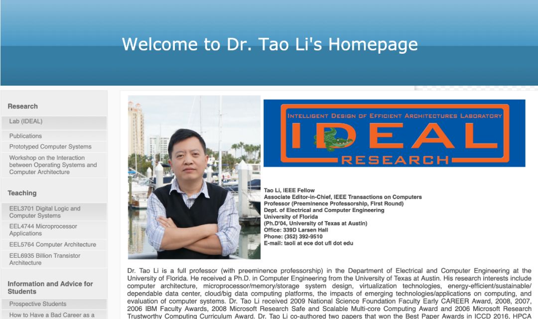 陈慧祥的导师李涛本科就读于西北工业大学,在美国得克萨斯大学获得计算机工程博士学位,研究领域包括计算机架构、微处理器/记忆/存储系统设计等等。