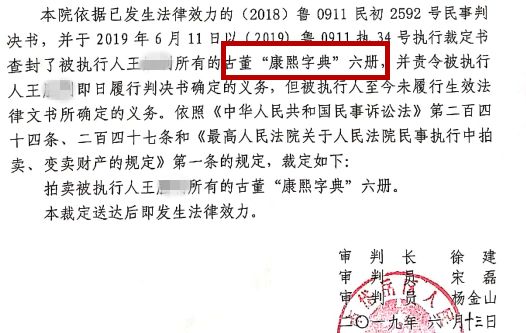 记者从岱岳区人民法院获悉,因民间借贷纠纷,被执行人未履行判决书确定的义务,于是收藏的 6 本康熙字典被岱岳区人民法院拿来进行公开变卖。 来源:红星新闻 |