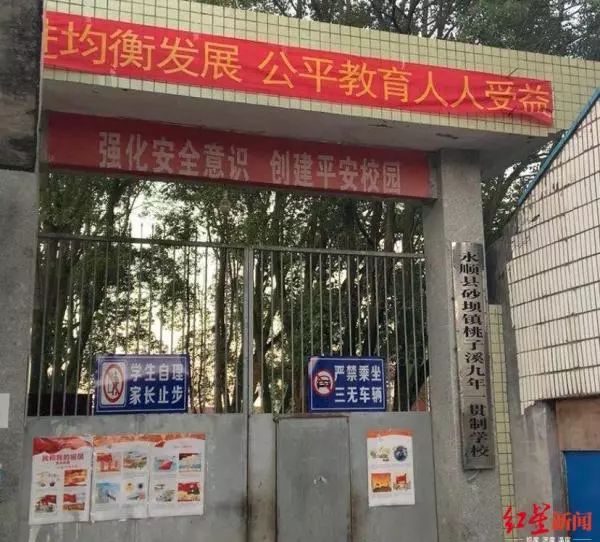10月18日下午5时,湖南永顺县沙坝镇,桃子溪小学大门紧闭,学生们已放学回家。透过门卫处,可以看到校道尽头还有不少男生在篮球场上打球,四周矗立着教学楼、教师宿舍和学生宿舍。