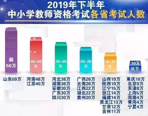 教育部官网11月1日晚间发布消息,2019年下半年中小学教师资格考试考生人数再创新高,高达590万人,考试科次1237万科次,比上半年考生人数增加一倍多,加上上半年考生人数290万,全年中小学教师资格考试人数近900万人。