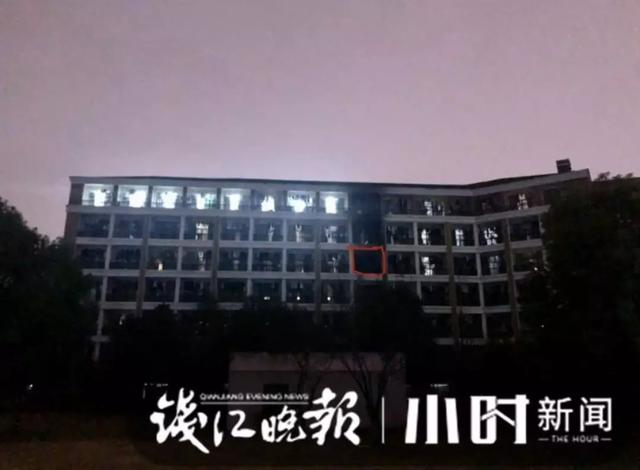 昨天晚上11点,记者赶到事发的宿舍楼边,离事发点还有50多米的地方,就能隐约闻到烟味。此时,事发的宿舍楼已经恢复供电,但宿舍楼内只有顶楼靠西面的部分寝室楼的灯亮着。