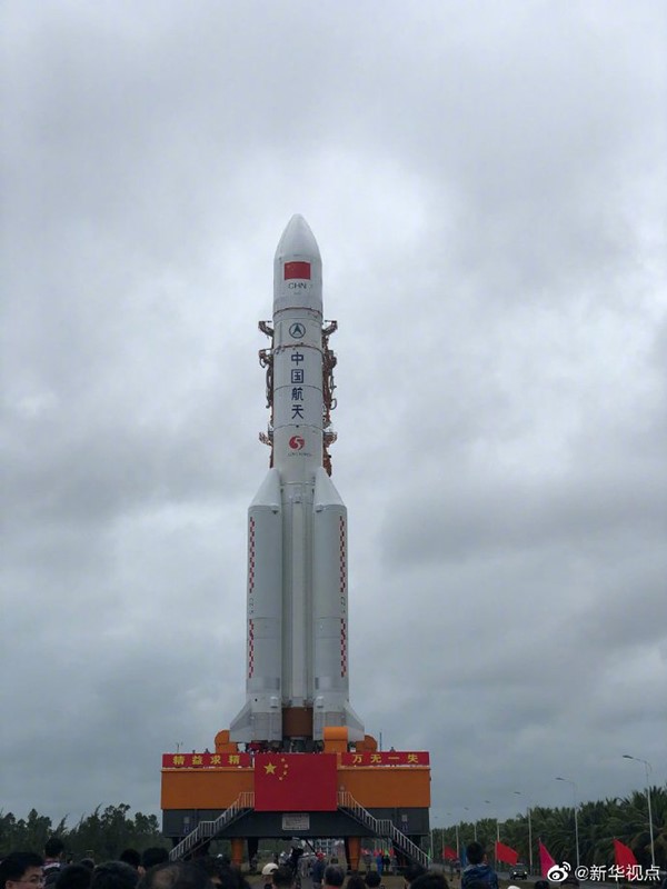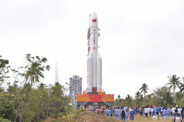 12月21日,经过垂直转运,长征五号遥三火箭抵达发射区。