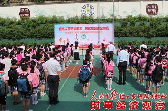 演练前各班班主任向孩子们讲解地震逃生顺序、逃生技巧以及班级疏散路线等。演练开始,听到警报声,指挥长立即告知孩子们“现在发生地震,请大家不要慌,就地避险”,孩子们在班主任的指挥下“用书包护头”选择桌底、墙角等地方进行躲避。当撤离警报声响起,二楼、三楼的孩子们在老师们的引导下有序向操场撤离;外操场的幼儿在班级老师的带领下,井然有序地抱着头,一个跟着一个撤离到安全区域。随后各班班主任快速清点学生人数并及时上报,现场指挥长向总指挥汇报全体师生的撤离情况,同时组织师生向地震中罹难的同胞默哀。 演练结束后,威远县气象局汪局长向师生进行了防震减灾知识宣传;威远县应急管理局政工科李科长对演练活动进行了点评,对黄荆沟镇中心学校应急疏散演练活动给予了高度的评价。 本次演练活动的开展,虽然只有短短的几分钟,却给全体师生带来不一样的意义。不仅提高了师生们风险防范意识、知识水平和避灾自救能力,也大大促进教师积累集体疏散的实战经验,更是一次切实的生命安全教育!