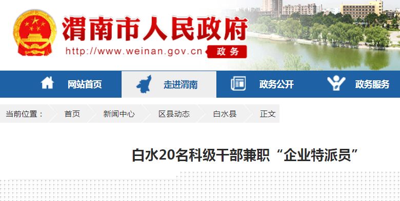 渭南日报2011年报道显示,陕西省白水县首批从县直19个管理部门挑选了20名科级干部,根据企业需求和干部职能特长,派驻到20家重点企业、项目。
