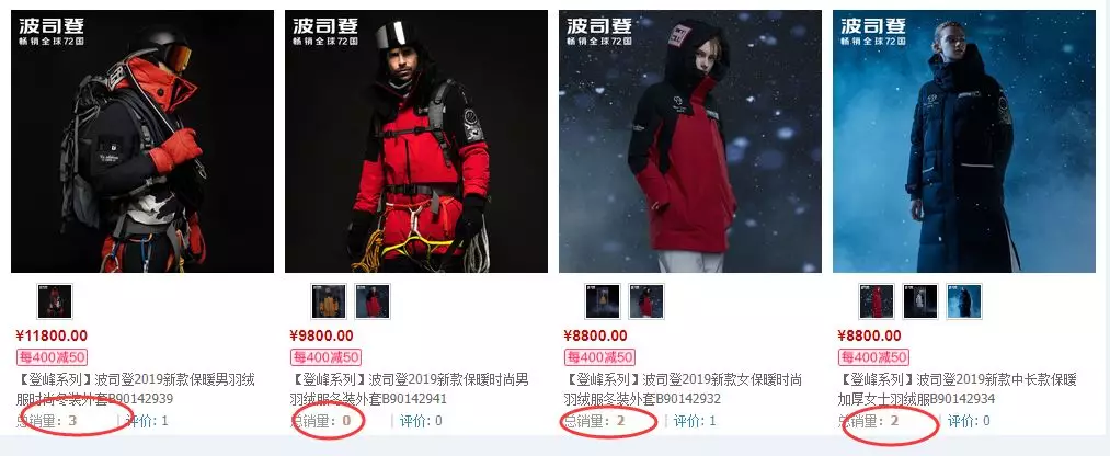 而售价在几百元左右的波司登羽绒服则很受消费者欢迎,销量大多都在上千件以上。