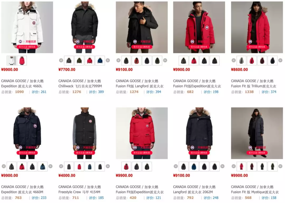 在同一电商平台上,有不少售价在8000元左右的Canada Goose羽绒服销量在上千件以上。