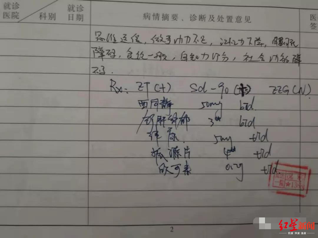 红星新闻看到家属提供的一份2015年6月30日重庆医科大学附属第一医院开具的处方笺显示,医生曾为邓某某开具舒肝解郁胶囊、振源片等药物。
