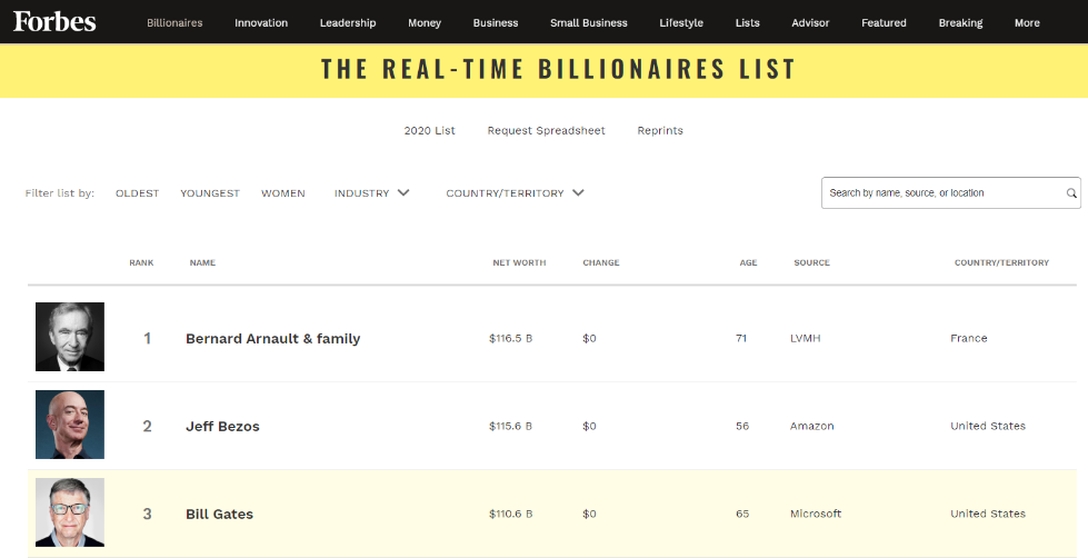 最新发布的《福布斯》世界富豪排行榜上,法国奢侈品巨头路威酩轩集团(LVMH)总裁兼CEO贝尔纳⋅阿尔诺(Bernard Arnault)取代了亚马逊创始人兼CEO杰夫⋅贝索斯(Jeff Bezos),登上榜首。