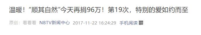 ……2019 年 11 月 27 日," 顺其自然 " 的第 21 次捐款如约而至了!截至今年," 顺其自然 " 捐款累积金额达到 1155 万元。
