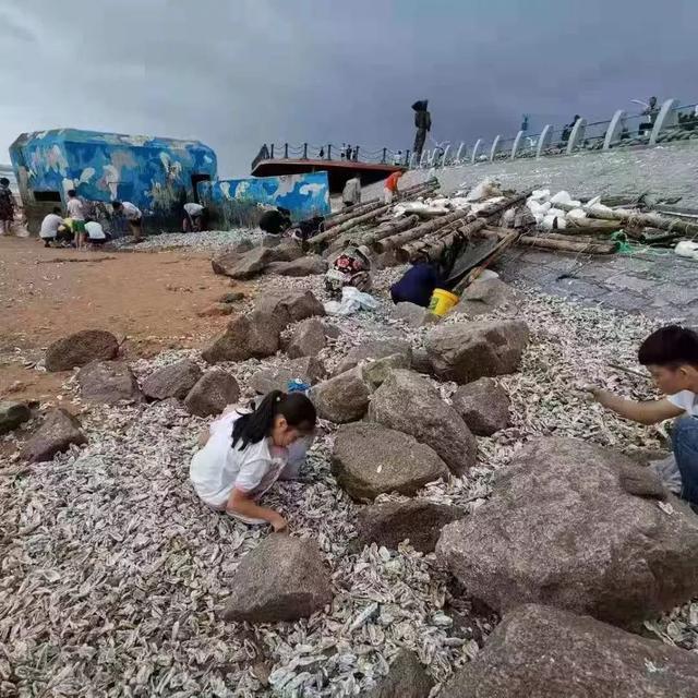 赵先生告诉记者,不仅在海军公园的海滩上有,其实昨天晚上在东方影都的海滩上也有很多。只不过当时有警戒线,不让下海。今天一早,很多人也到那里去捡拾。从东方影都到海军公园沿线的海滩上,凡是有礁石的地方,就铺满厚厚的海蛎子。