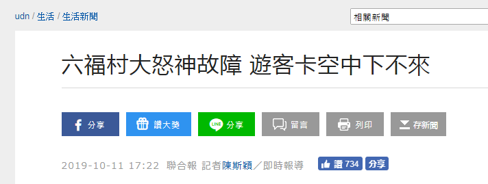不过,“中时电子报”提到,当时“大怒神”的四面座椅只有一面出现异常,停止运作,但园方立即停止“大怒神”四面设施的运作以进行检修,15分钟后恢复运作。