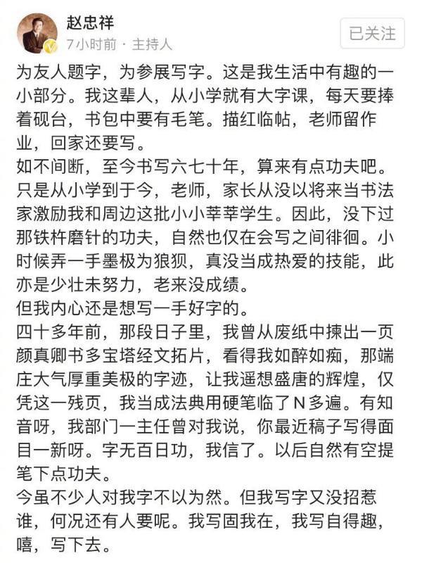 近日赵忠祥卖字画、有偿合影的消息散布网络,10月21日晚,赵忠祥接受封面新闻采访,首度回应称收钱合影是污蔑,他说:“某自媒体没有根据无中生有造谣我收钱合影,这是对我个人名誉的污蔑!我从没有想过与观众合影要收钱,某些自媒体简直是无中生有,妖言惑众。” 自媒体爆赵忠祥收费合影 赵忠祥怒骂自媒体:造谣生事! 这篇报道中,赵忠祥还表示自己是头一回听说合影捞金一事,他说:“这是某些自媒体故意恶心我,毁我。什么时候观众找我合影我收过钱呢?举不出实例就是造谣生事!观众就是上帝,观众找我合影是表示善意,关注我,喜欢我,我怎么可能收钱?平常生活中,我除了写点小文章发在头条或微博上,我不上网。所以网上传出合影捞金的新闻我也是今天第一次听到,实在太可笑。” 据报道,赵忠祥售卖字画依字的难度和数量定价,而名为“娱理工作室”的自媒体针对售卖字画一事调查称,通过联系赵忠祥的字画售卖中介张先生,以4千元价格见到赵忠祥,内容包括一张福字、会面、合影,整个过程3分钟。10月19日,赵忠祥在社交平台回应称,“为友人题字,为参展写字,是我生活中有趣的一小部分。尽管有人对我的字不以为然,但写字又没招惹谁,何况还有人要,我写固我在,我写自得趣”。 赵忠祥回应卖字。 网友:公众人物也是人 不过有网友对“娱理工作室”的暗访用意和继续文章发出质疑,称该工作室不尊重赵忠祥,利用明星蹭热度来炒作工作室名气,有网友批评说:“你赶着跑去送钱,送完钱你又嫌弃人家收钱态度不好,老赵这都80了,万一躺了都能吓死你……公众人物也是人,老赵的名气是上一代捧出来的,跟你没关系,反倒是你,在老赵身上蹭啊蹭的看着膈应人。” 《扬子晚报》针对明星录制祝福语、录广告和售卖字画发表长篇报道,称除了老艺术家,这种依靠名气赚钱的方式在许多一线明星中也很常见,例如定制祝福和网络广告,还有SNH48的握手会,与老年明星兜售字画异曲同工,只是老年明星再难接到高价代言。文化评论人江小鱼接受《扬子晚报》采访对此表示:“这本来就是明星和粉丝之间的食物链中最基本的组成部分,无论顶端与低端都是这样的商业模式。几乎所有的明星都在干这个事情。”中国文艺评论家协会网络文艺委员会委员、安徽大学博士吴长青有类似观点,他称赵忠祥通过合照为求字画的网友提供“增值服务”合情合理:“合照是为字做了验证,不用再交鉴定费了。有增值服务,收费当然是正常的。” 来源:南方都市报 |