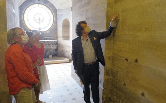 该发现最初是来自该教堂的管理员艾美里克·斯图茨。他在进行检查时注意到下层教堂圆柱之间的墙壁出现了奇怪的裂缝。为了不破坏建筑物的地基,他报告法国当局请来了一名考古学家,通过墙上的石头插入了一个摄像头。经过查看,考古学家证实,教堂墙壁内有四个木制的棺材,很可能是用皮革铺开的,里面装满了人骨,泥土里混杂着骨头的碎片。