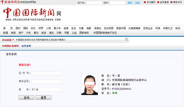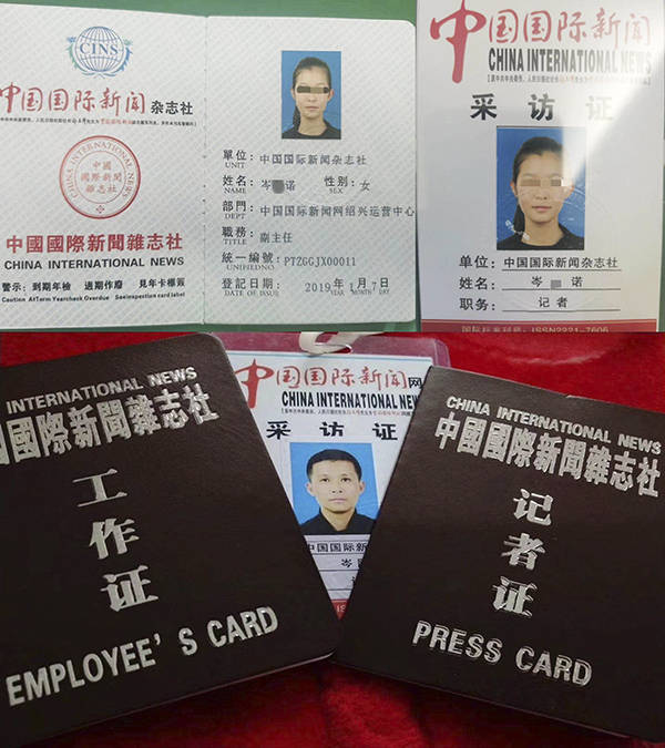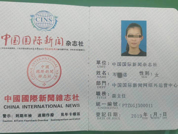 岑某诺的中国国际新闻杂志社 工作证 岑刚灿朋友圈 图