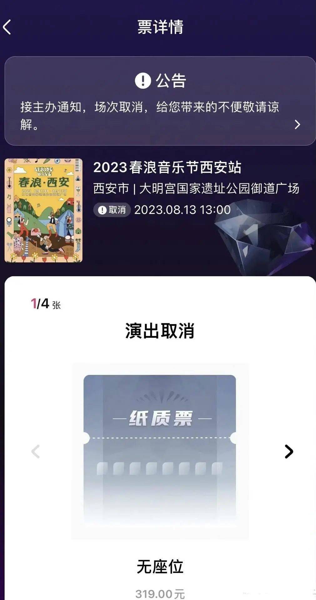 此前,原定8月12日至13日举办的2023春浪音乐节西安站,在距离正式演出不到两天的时间宣布取消。有消息称,计划于今年8、9月份在西安市举办的大型演出活动都将受到影响。而此次刘若英西安演唱会,同样在临近开演的时间传出取消的消息,引发了网友对于9月8日至10日五月天西安演唱会能否顺利举办的讨论。 报道回顾 一音乐节,紧急取消!知情人:艺人到了一大半 南方都市报(nddaily)、N视频报道 |