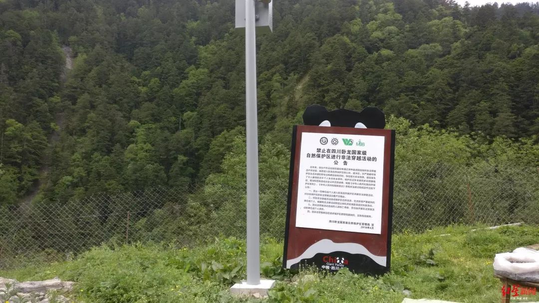 △“禁止四川卧龙国家级自然保护区进行非法穿越的公告”牌