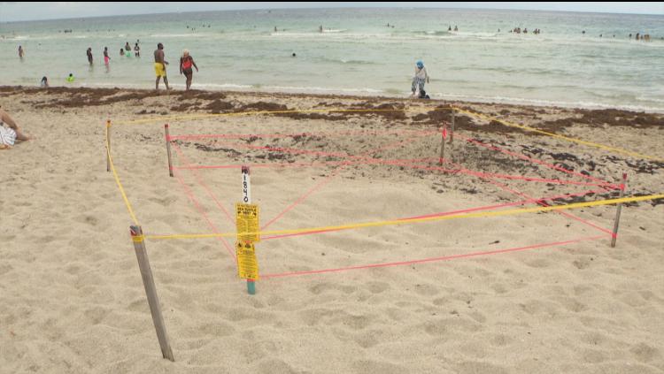 据悉,该海龟窝位于迈阿密一自然保护海滩内,四周已用八根木桩和黄色胶带围成两圈封闭起来,并贴着“请勿骚扰”的警告牌。迈阿密海滩是三种受保护海龟的栖息地:红海龟、绿海龟和棱皮龟。每年5月到11月初,海龟会在海滩上筑巢繁衍。
