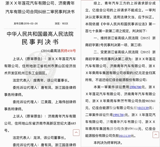 2018年年9月,最高人民法院作出民终458号《民事判决书》。判决认定,在履约中,亿佳合以庞青年对外收购无成功迹象为由,一直未予支付款项,有违双方的约定,应依照定金罚则承担责任,2亿元定金归庞青年旗下公司所有,不返还给亿佳合。