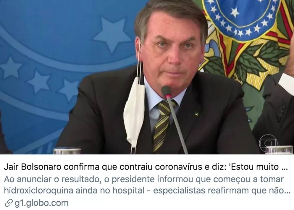 博索纳罗证实他已感染新冠病毒,并表示自己很好。/ 巴西新闻媒体“G1”报道截图