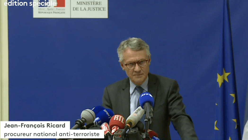 里夏尔通报了29日案发时的细节以及受害人情况。他表示,4名警察在案发几分钟后迅速制服了该名男子,从而避免了更大规模伤亡。警方随后缴获了一把行凶刀具,并在该男子遗留在教堂内的背包里找到了另外两把未使用刀具。此外,警方还发现了两部手机和一本可兰经。