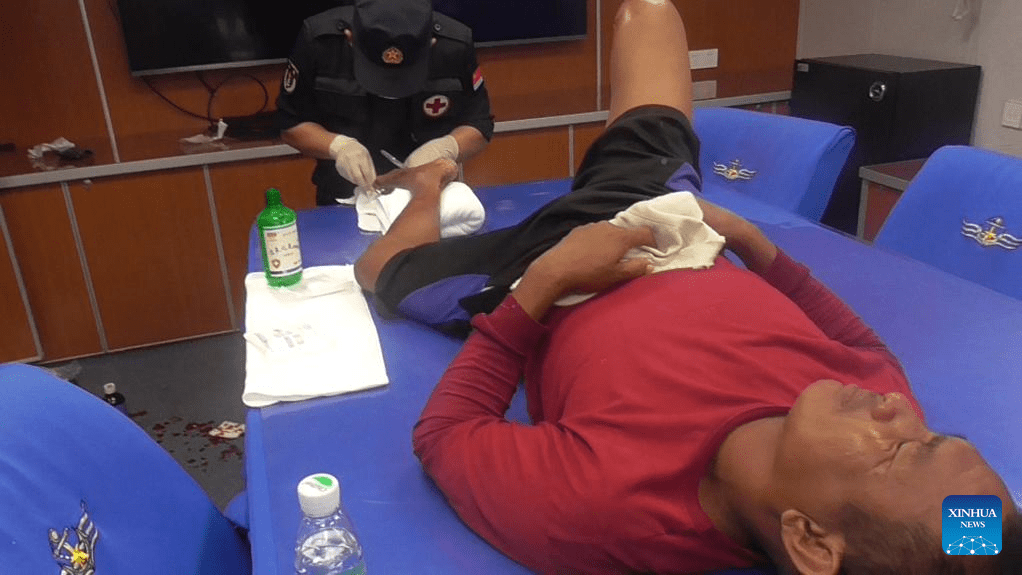 【环球网报道】新华社英文22日援引南部战区海军和中国海警消息,中国海军“阿坝舰”近日在南沙群岛东部海域巡航时,对两名求助的菲律宾渔民提供了帮助。 报道称,当时,两名求助的菲律宾渔民其中一人被螺旋桨叶片划伤造成失血,“阿坝舰”海军官兵将二人救上船后,医务人员为伤者清洗伤口、止血并包扎,并为二人提供食物和药品。在伤者情况稳定后,“阿坝舰”官兵和中国海警联系了菲律宾方面,将这两名菲律宾渔民移交给了菲方。 来源:环球网 |