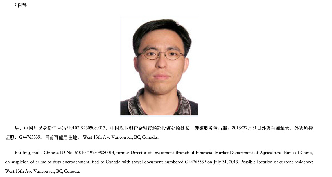 上述公告称,白静因涉嫌犯职务侵占罪于2013年9月9日被内蒙古自治区公安厅立案侦查,同年11月18日被内蒙古自治区人民检察院批准逮捕。白静于2013年7月31日逃匿,同年12月19日国际刑警组织对其发布红色通报。
