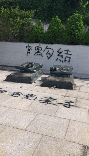 何君尧家人坟墓被人涂“官黑勾结”等侮辱字句(图片来源:港媒)