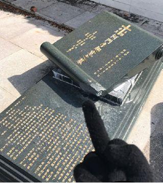 何君尧家人坟墓周围被写上侮辱字句(图片来源:香港《明报》)