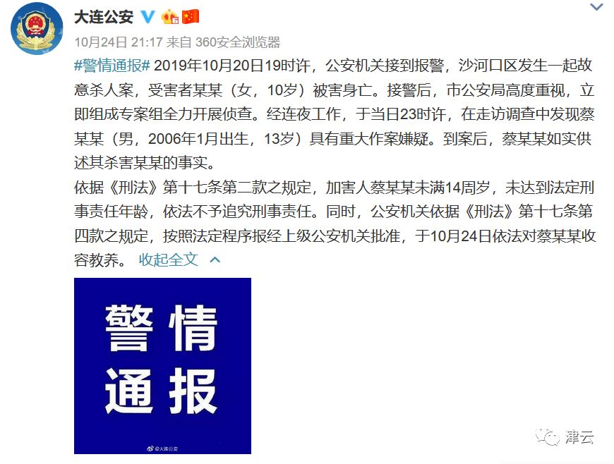 津云新闻记者 侯沐伟 发自辽宁大连 “那个男孩把我10岁的女儿骗到他家中,试图性侵并最终多刀杀死了她,还把她的尸体扔到绿化带中。可是就因为那孩子还差两个多月才到14周岁,这种种罪行就只能‘不予追究刑事责任’!”王章提及杀死自己女儿的13岁男孩时,下颌紧绷了起来,语气中充满愤怒。 10月20日下午,家住大连市沙河口区的王章和妻子贺薇发现,本应已经下美术课回家的10岁女儿王萱并未回来。经过报警和几个小时的寻找,王章最终在小区内距家200余米远的一处绿化带发现了女儿衣衫不整的尸体。警方当晚接案后走访调查,将嫌疑人锁定为该小区一名13周岁的男孩蔡某某。当夜,蔡某某供述了其杀害王萱的事实。 受害人王萱 涉嫌杀害王萱的13岁男孩蔡某某(左一)受访者提供 10月24日晚上,大连警方发布通告,称按照法定程序报经上级公安机关批准,于10月24日依法对蔡某某收容教养。 下课后女儿久未归家 监控录像只看到尸体发现前4小时的身影 10月20日下午,是王萱每周日上美术课的时间。当天13点多,正在上初中的哥哥送王萱来上美术课,15点下课后,王萱自己步行回家。按照平日的安排,王萱会先回到父母开的水果店里,稍后再回家。据王章介绍,上美术课的地点距离水果店步行仅10至15分钟。 然而,到了15:40左右,王萱仍然没回来,王章和贺薇意识到问题,随即在小区里开始寻找女儿。 王萱和哥哥的奖状 王萱的舅奶回忆道,10岁的王萱是一个很懂事的孩子,不仅学习成绩不错,放学后也都是老老实实地直接回家,从来没去过同学家玩。因此虽然只是比预计回家时间晚了不到半个小时,她的父母还是敏锐地判断女儿出了事情。 贺薇表示,在找女儿的过程中,最晚见到王萱的一位女士对她说,曾于15:15左右在小区内一个路口见到过这孩子。贺薇随后请求这个路口附近的单位和商铺协助她调取了门前监控,并发现了女儿王萱的身影。记者在现场观察发现,这个路口距离案发现场的蔡家大约有50米距离,距离王章夫妇所开的水果店大约150米。 王萱最后出现在监控画面中的路口 上述这段监控录像所记录的时间为20日15:20,这正是王萱本应下课回到父母水果店里的时间,这也是活着的王萱出现在监控中最晚的一段录像。 王萱遗体被发现的树丛 整整四个小时后的19:20,王章终于在小区内一处绿化带的树丛中发现了女儿王萱的尸体。据随后的法医鉴定显示,王萱的死亡推定时间为18点左右。 行凶男孩和被害女孩家并不熟识 母亲懊悔没有接孩子放学 贺薇告诉津云新闻记者,蔡某某和自己儿子在同一所初中读书,又和自己女儿一起待过一个夜托班,加之又在同一个小区里居住,因此自己记得他。但她回忆称,她们夫妇以及两个孩子和蔡某某只是互相认识,并不熟识,平时也没什么来往,蔡某某也从未来过自己家里玩。 贺薇反复回忆表示,女儿生前并没有和父母透露过她遭到了蔡某某的骚扰和纠缠,也没表露过有被跟踪的烦恼,因此很难说蔡某某究竟是临时起意行凶,还是蓄谋已久。 据了解,案发后的21日凌晨,蔡某某被警方控制,并供述了其杀害王萱的事实。关于蔡某某使用了何种手段或说辞将王萱带到了自己家中,又是如何将王萱限制在他家中数个小时,警方尚未向王章夫妇透露。 王章家的一位亲戚对记者说,女儿被害后,贺薇陷入了深深的自责中,她懊悔自己为什么没有亲自接女儿下课。 这位亲戚介绍说,王章夫妻二人平日经营一家小区内的水果店,贺薇要很早起来去进货,白天就在家补觉,10月20日当天下午,她的电话是静音的。平日里,夫妻二人原本在大多数时候会接送孩子:“当然,并不是说每天都能保证接送,但据我所知,他们夫妻俩大部分时间会接女儿上下学,包括周一到周五正常的上学,以及周日女儿的英语课和美术课。但那一天,可能是因为太累,孩子的妈妈在睡觉时没接到电话,女儿就自己回来了。偏偏就是这一次自己回家的路上,孩子出了意外。” 真凶曾两次“登门搭讪” 询问父亲“女儿找到没有?” 王章事后回忆女儿从失踪到尸体被发现的那个下午,除了见到女儿尸体横在绿化带中时的绝望,令他感到最愤怒和不可思议的是,杀害自己女儿的那个男孩竟然曾两次主动来到自己眼前,还恍若无事地跟自己搭了话。 “那天下午我照常在水果店里摆摊,快到15点时,蔡某某踱步到我的店前,问了我一句‘王萱去哪里啦?’我说‘她上课去了。’他就走开了。”王章说道。 当日16:30,王章已经开始和家人一起四处寻找迟迟未归的女儿,找了一圈未果后,他暂时回到自己的水果店中。此时,蔡某某又在他眼前出现了。 “他这次过来问我‘你女儿找着没有?’神态仍然看不出什么异样。事后根据监控录像的时间回想,那时我女儿应该已经被他骗到了他家中。我不知道他怎么做到那么平静地跟我说话。”王章说,此后他就继续去寻找女儿了,没再在意蔡某某的动向。 贺薇表示,蔡某某虽然只有13周岁,但身高已有170公分,体重也在140斤到150斤左右,看起来并不像这个年纪孩子的体格,“我家女儿很瘦小,发生肢体冲突的话,肯定不是那个男孩的对手。同时,他这个体格也具备抛尸的身体条件。” 女孩尸体被发现时衣衫不整 身体有多处刀痕和淤青 20日19点左右,大连的天色已逐渐转为一片漆黑,王章夫妇和家人仍在继续打着手电筒寻找王萱。19:20,王章终于在一处绿化带找到了倒在地上的王萱,但面