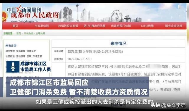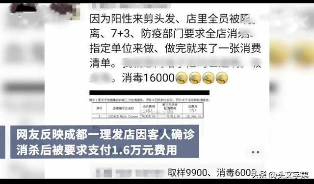 近日,成都出现了新的疫情,出现了不少的确诊患者,有的患者正在理发就被通知确诊,然后店铺就被「指定单位」消杀。 消杀是必须的,但是却存在着一些猫腻。 根据中国新闻周刊 8月30日报道,有网友反映成都一理发店因顾客确诊,后有“指定单位”对店铺进行消杀,事后要求理发店支付16346元的消杀费用。 这是第一次听说有指定单位来消杀的,不免引起了怀疑,随后就被店主曝光到了网上,不知道这样的收费合不合理? 根据收费单显示,这次的消杀「指定单位」是成都宏森华永机电设备有限公司锦江分公司,对店铺的消杀费用为6435元,对店铺内人员第三方采样检测费为9911元,总共费用为16346元。 好像从来没有听说过消杀收费的,那么消杀真的需要收费吗? 根据卫健部门称,如果出现需要消杀的情况,当地有关部门上门消杀的完全免费,不存在收费消杀的规定。 当地的有关部门称不清楚收费方的资质情况,收费清单上显示的消杀公司成立于今年7月12日,也就是才刚刚成立一个月左右,如何获得第三方消杀资质的呢? 当有关部门致电该公司法人时,这位法人竟然称自己不是该公司的员工,也不知道出了什么问题,对于询问表示一无所知,并且拒绝了回答。 目前,多个部门正在介入调查此事,调查结果会在后续公布。 |
