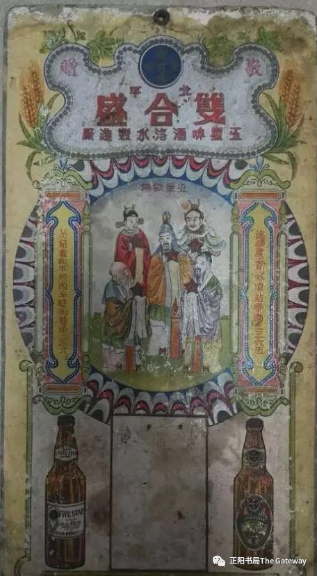 据传说,“五星啤酒”最初的寓意是“福禄寿喜财——五星高照”。您看这张老酒标,还真有点儿那意思