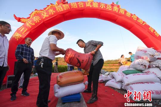 第三代杂交水稻首次专家测产结果22日在位于湖南长沙的国家杂交水稻工程技术研究中心发布,第三代杂交水稻新组合试验示范衡南基地平均亩产达到1046.3公斤。这是第三代杂交晚稻亩产首次突破1000公斤。 袁隆平在国家杂交水稻工程技术研究中心内的第三代杂交水稻试验基地观察稻谷长势。杨华峰 摄 来源:中国新闻网 |