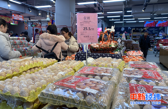 中新经纬客户端走访北京石景山区一家物美超市时发现,该超市销售的缤纷田园、水清峪、正大桃谷香、耀坤等品牌鸡蛋正在进行折价促销。