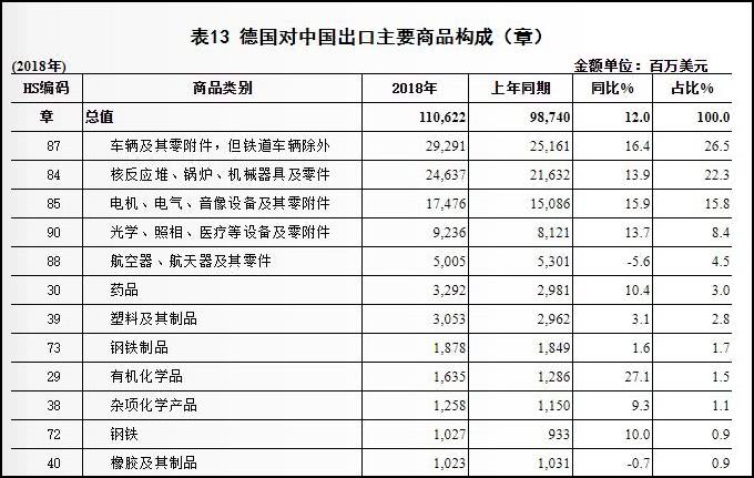 德国对华主要出口商品(图源:商务部国别报告) 来源:观察者网 |