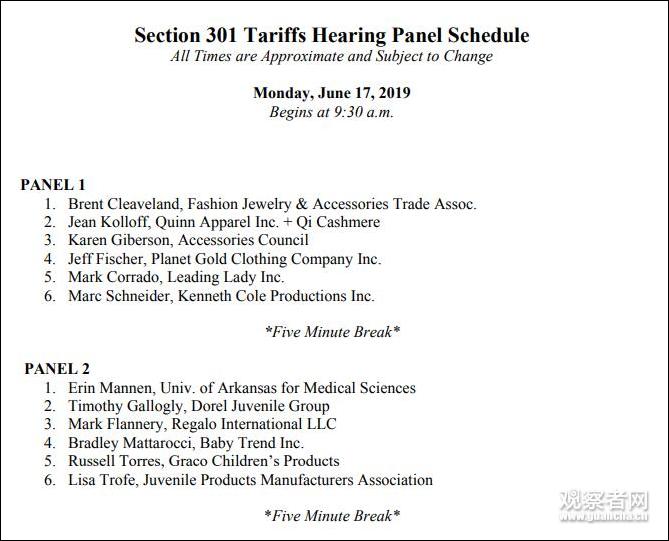 6月17日,美国政府就“3000亿美元关税”如期召开听证会。首轮入场的美企代表,开门见山地告诉特朗普政府,对华设立关税的逻辑本身就是错误的: 想通过关税迫使美企离开中国市场,不存在的。一些商品只能通过中国市场采购获得;若强行更换采购渠道,美国相当于给自己设立了一道25%以上的关税。 值得一提,现场有一家美国羊绒制品公司,告诉美国政府其公司羊绒采购只能在中国内蒙古实现。而美方官员还追问:不是蒙古国也产羊绒吗?美企代表随后指出两地羊绒产品的不同,鉴于美国市场的喜好,该公司必须采购内蒙古产的羊绒。 而CNBC新闻网、《华尔街日报》等媒体曾透露,“迫使美企离开中国市场”,恰恰是特朗普政府设立关税的目的。 这些产品,中国主导全球生产 本次听证会为期7天。根据美国贸易代表办公室给出的议程名单,第一批入场的有47家企业代表,行业从零售、制造、高科技企业不等;召开听证的一方为来自美国贸易代表办公室、美国商务部、美国国务院等机构的代表——前者向后者提交了口头或书面陈词。 参加首轮听证会的部分企业名单图自美国贸易代表办公室 路透社透露,现场有“几十家”企业代表表示,将企业的采购、运营等项目从中国搬到越南等地,在这几年内是行不通的。因为那些国家缺乏劳动人才和基建基础。从鞋子到电子产品,再到龙门起重机,中国主导了全球的生产。 部分企业认为,如果强行将采供生产搬出中国,美国相当于给自己设立一道25%以上的关税。 “把税加到25%,就等于我们被重重拍了一记头皮。”美国服装和鞋类协会主席里克•赫芬贝(Rick Helfenbein)说道,“如果我们能将更多生产搬出中国,我们就做了,问题是做不到。” 明尼苏达州一家婴儿用品生产商Regalo Baby的总裁弗朗奈里(Mark Flannery)指出,若强行将生产转移至越南,将会带来50%的额外成本;墨西哥产线的额外成本甚至比50%还要多——相比之下,不选择搬出中国的成本,也就25%的关税。 “就目前来看,除中国以外世界上没有第二个国家在生产婴儿铁栏安全门。”弗朗奈里说道。 Regalo Baby婴儿安全门产品图图自亚马逊 美国时装企业Kenneth Cole总裁施耐德(Marc Schneider)指出,25%的关税会抹去所有的利润空间,并造成裁员现象。如果选择中国以外的采购渠道,该公司产品不仅会涨价,“质量也会下滑”。 羊绒进口商Quinn Apparel称其反对关税的目的,更多是基于“地理角度”:该公司销售的一种淡色羊绒只能在中国内蒙古地区采购,这种羊绒产于阿拉善白绒山羊。 央视《农广天地》曾于2012年10月介绍过这种山羊。它所生产的羊绒纤维细长、手感柔软、拉力大、光泽好、颜色正, 被誉为“纤维宝石”,具有较高的经济价值。曾经获意大利“柴格那国际金奖”、中国第二届农业博览会金奖。 Quinn Apparel羊绒制品(上)和阿拉善白绒山羊 现场美国官员还向这家公司CEO克洛夫(Jean Kolloff)确认,是不是只有中国才有这种羊绒,因为“蒙古也产羊绒”。 克罗夫回答:“蒙古的羊绒一般是棕色、黑色。”她指出美国客户喜欢淡色羊绒制品。这也意味着这家公司必须使用白色羊绒,便于染色。而这种白色羊绒只有中国内蒙古才有。 没了中国,如何装扮圣诞树? 上述企业均于17日参加了首轮听证会。不少未获得邀请的企业,在场外通过接受媒体采访发声。除索尼、爱普生、三菱等跨国企业“组团抗议”、661家企业“联名上书”外,昨日又有一些中小企业接受美联社的采访,“哀求、恳求、祈求”特朗普政府“运用贸易常识”。 而这次听证会计划开到25日,仅首轮结束,路透社就担心起了今年美国人的圣诞购物假期。 文章以英国作家查尔斯•狄更斯1843年小说《圣诞颂歌》中主人公常用的一句口头禅,“圣诞节什么的都是骗人的”为题,称预计今年圣诞购物计划不会顺利。就往年美国人“购物车”内主要商品来看,从玩具到电子产品,每样挡在了关税墙之外:
