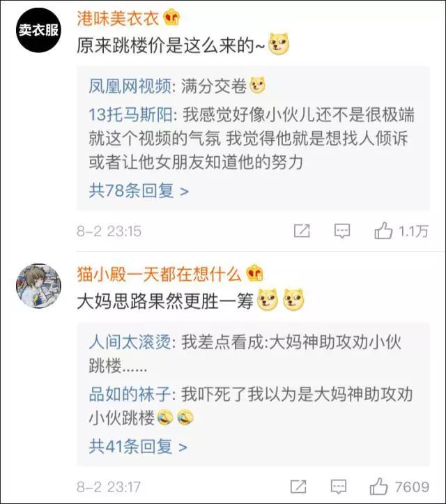 8月2日,南京市公安局官微@平安南京发布了一条令人哭笑不得的办案视频。 7月30日晚,江苏省南京市建邺区,一名男子坐在居民楼的窗口,一条腿已然跨出窗外,分明是要跳楼的模样。 几位民警迅速赶到现场。见到民警后,他终于袒露心声:自己30岁了,190斤。女朋友嫌他太胖,他就天天晚上为她跑步,瘦了10斤。 当天下午女朋友说要吃花甲,他就走3了公里路,到菜市场给她买。 “因为她是我谈的第一个女朋友!你看,我都为她自残!” 原来这名男子是因为失恋,才有了轻生的念头。 民警赶紧拉住他,让他不要走极端,不然会把人家姑娘给吓跑。 劝着劝着,一位热心邻居大妈的声音洪亮地响起:“小伙子,你不要跳下去,跳下去我们楼盘要降价了!” 民警继续安慰道,初恋谈不成功的人多了去了,要对得起自己,对得起父母亲。 最终,在警民的共同劝说下,男子终于爬下窗台,放弃了轻生念头。 网友被大妈简单粗暴却也发自肺腑的“助攻”笑喷了:敢情“跳楼价”的典故是这么来的…… 来源:荔枝新闻 |