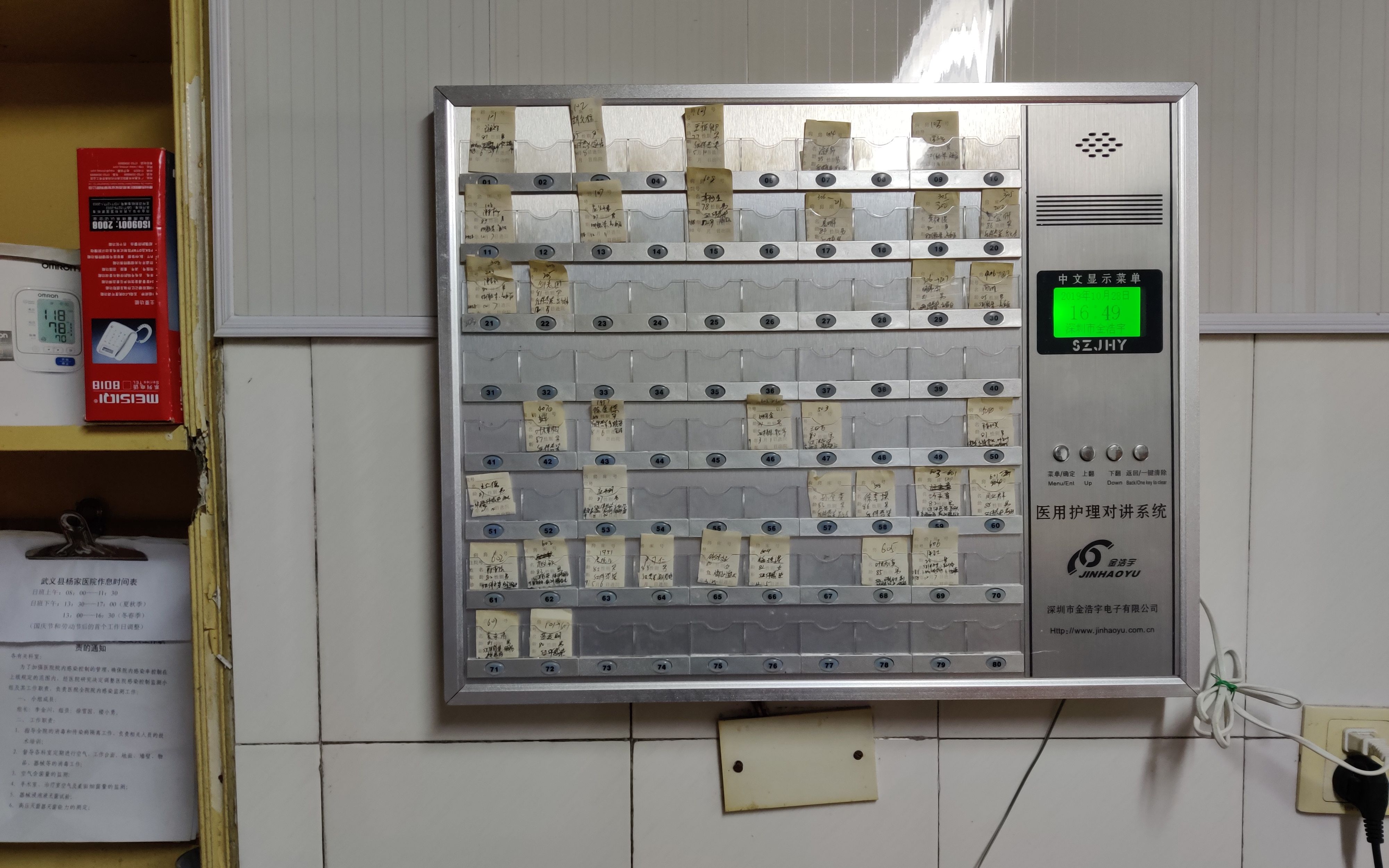 医院不大,住院部四栋楼只剩3栋二层小楼还在使用,中间一栋用于医生护士值班、吸氧和体检等医疗用途,前后两栋则是住院的病房,一共32间。3栋住院楼房间号是连续的,奇数为一层,偶数为二层。住院部周围除了水泥路面,都被病人、家属和医院职工种的菜地包围环绕。