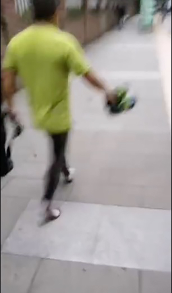 周于平救人后,湿着衣服、提着鞋的背影被人录下视频。录视频者说,“周师傅(指周于平)你好伟大,我看到有人跳下去救人……”